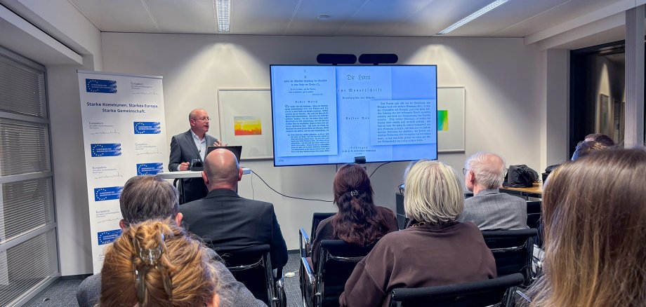 Am 19. November führte wie jedes Jahr im November das Europabüro des DStGB zusammen mit den Brüsseler Kollegen der bayerischen und baden-württembergischen Verbände ihre traditionelle historische Veranstaltung anlässlich der amtlichen Veröffentlichung der preußischen Städteordnung vom 19. November 1808 durch. Ca. 35 Personen folgten diesem Vortrag. Diesmal stand das Ganze unter dem halbhumoristischen Motto „die Gemeinde-(un)ordnung der Schlümpfe“. Referent war Priv.-Doz. Dr. Dr. Grischka Petri. Er leitet die Abteilung Urheberrecht im Bereich Immaterialgüterrechte bei der FIZ Karlsruhe (Leibniz-Institut für Informationsinfrastruktur) und ist Privatdozent für Kunstgeschichte in Bonn. Der Vortrag spielt auf das Werk des belgischen Comiczeichner Peyo (Pseudonym von Pierre Culliford, geb. am 25. Juni 1928 in Schaerbeek, gest. am 24. Dezember 1992 in Brüssel) an. Dieser entwarf die „Schlümpfe“ 1958, die als Oberhaupt Papa Schlumpf haben, einen wohlwollenden Patriarchen, und der dem kleinen Dorf der Schlümpfe vorsteht. Die Schlumpf-Abenteuer zeichnen sich dadurch aus, dass ein Ereignis oder eine Schlumpf-Idee zu einer Erschütterung der Ordnung der Schlumpf-Gemeinschaft führt, die dann wiederhergestellt werden muss. Der Vortrag unternahm den Versuch, aus ausgewählten Erzählungen der Schlümpfe eine immanente Gemeindeordnung des Schlumpf-Dorfes zu entwickeln und in einem zweiten Schritt, den Bezug zu politischen Modellen der Gemeinschaft und Gemeinde herzustellen. Hier kam Friedrich Schillers Abhandlung „Über die ästhetische Erziehung des Menschen“ (1795) eine Schlüsselrolle zu. Der Vortrag wird in ein paar Wochen in der DStGB-Zeitschrift „‘Stadt und Gemeinde“ veröffentlicht werden.