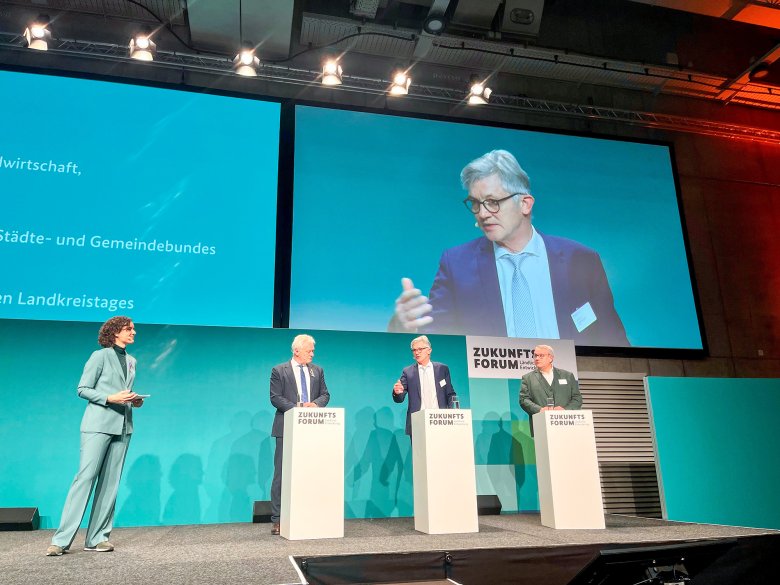 Im Bühnengespräch zwischen Bundesminister für Ernährung und Landwirtschaft Alois Rainer, DStGB-Präsident Ralph Spiegler und dem Vizepräsidenten des Deutschen Landkreistages, Götz Ulrich, machte Ralph Spiegler deutlich, dass ländliche Räume dauerhaft auf verlässlich abgesicherte Mittel angewiesen sind. Sowohl im kommenden EU-Finanzrahmen als auch in der Gemeinschaftsaufgabe GAK müsse die Strukturförderung ländlicher Räume ausreichend berücksichtigt werden. Die LEADER-Strukturen seien eine tragende Säule der partizipativen Regionalentwicklung und unverzichtbar für starke Kommunen und demokratische Beteiligung vor Ort.